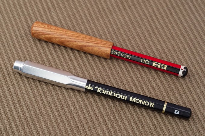 「大人の鉛筆キャップ」 craft a×分度器ドットコム 木製鉛筆キャップ 私が鉛筆キャップに求めるのは2つのこと。ひとつは、削った芯先をしっかりと保護してくれること。私は鉛筆を肥後守で削っている。 ペンシルエクステンダーキャップ 鉛筆補助軸をグレードアップする 文具系, 製品紹介 Comment (0)Trackback (0) ペンシルキャップじゃなくて、鉛筆補助軸(ペンシルエクステンダー)用キャップです。 鉛筆にキャップを付けるのならば、鉛筆補助軸に差し込んだ鉛筆にだってキャップが デッサン鉛筆を使う方にオススメ 大人のペンシルキャップ 工房だより, 雑記 Comment (0)Trackback (0) デッサンをする方は鉛筆を特殊な削り方にします。 多様な表現を可能にするため、芯を長く出す形で削ります。